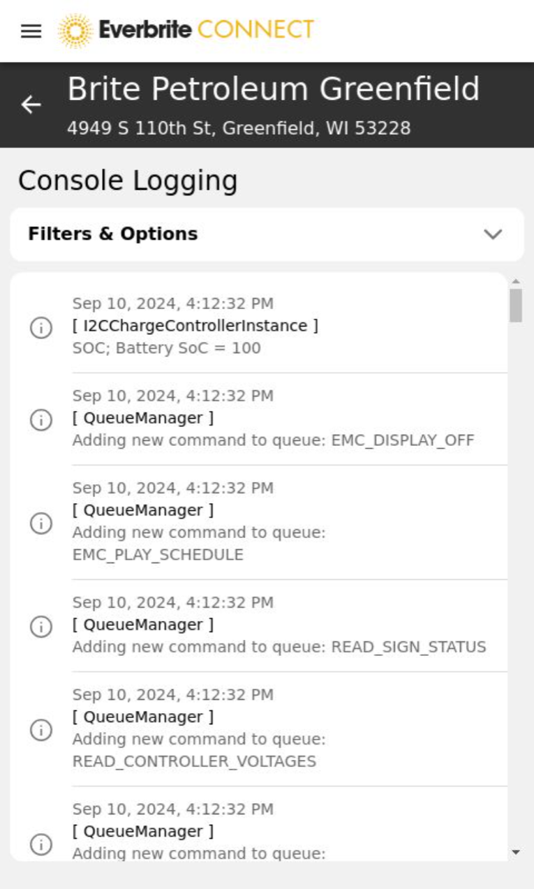 While available to the end user, Console Logging is intended primarily for use by Everbrite Technical Support to diagnose issues. Information provided by this tool is extremely verbose.